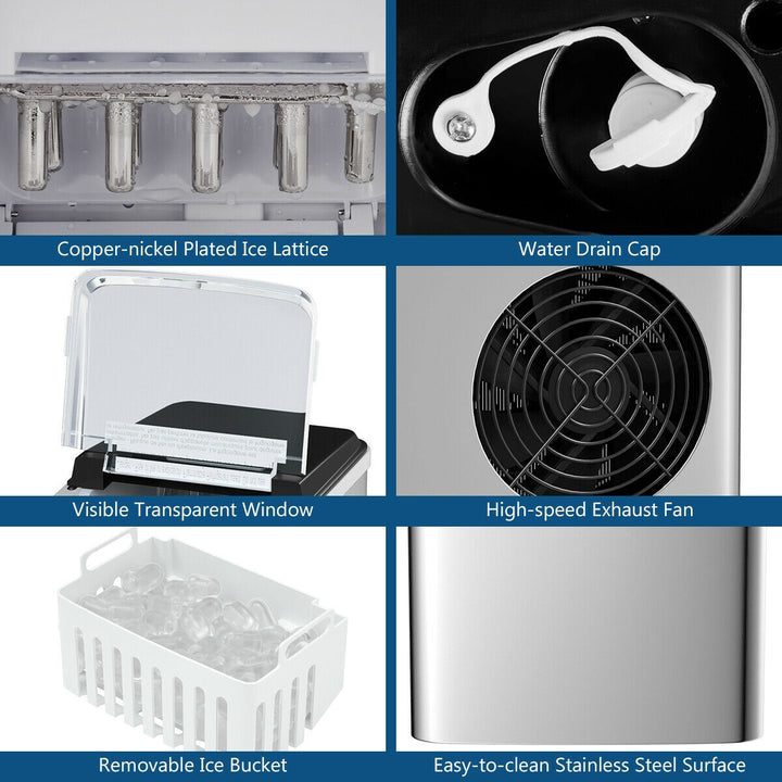 Stainless Steel 26 lbs/24 H Self-Clean Countertop Ice Maker Machine