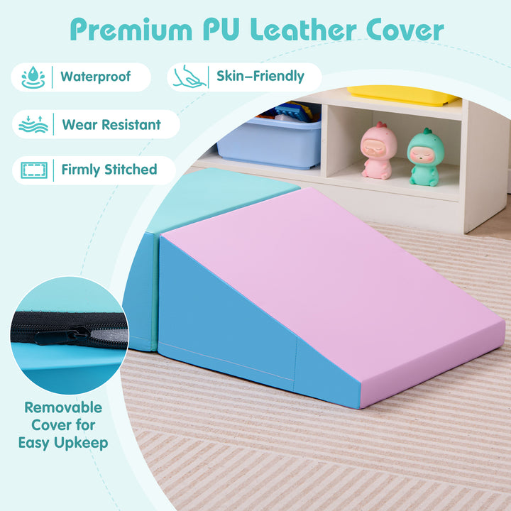 This 2-piece soft play set provides a safe, cushioned environment for infants and toddlers to explore. Made with high-density EPE foam and covered in durable, waterproof PU leather, it helps develop motor skills through climbing and sliding, fostering physical and sensory growth. ASTM & CPSIA compliant.
