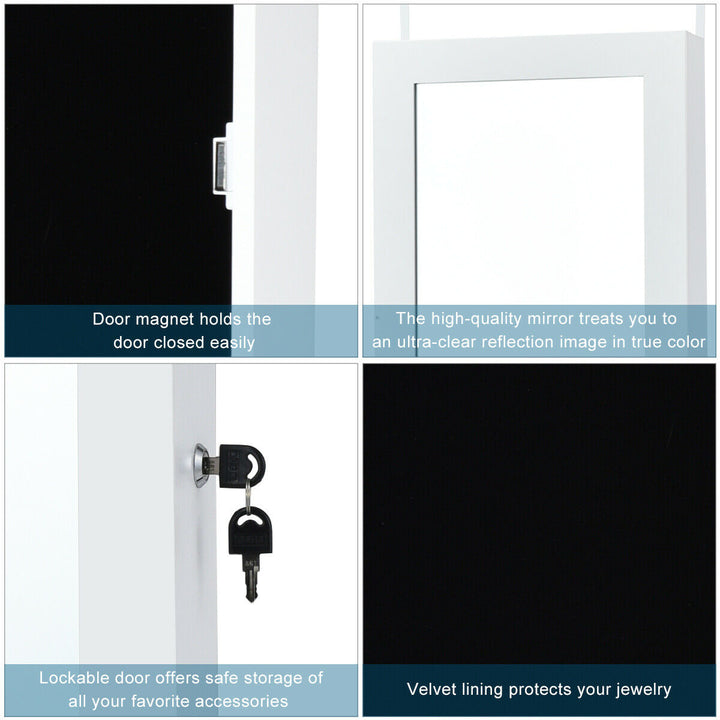 Door Mounted Lockable Mirrored Jewelry Cabinet with LED Lights