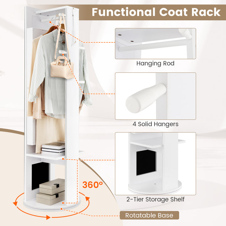 360 Degree Swivel Jewelry Cabinet Armoire with Full Length Mirror and Coat Rack
