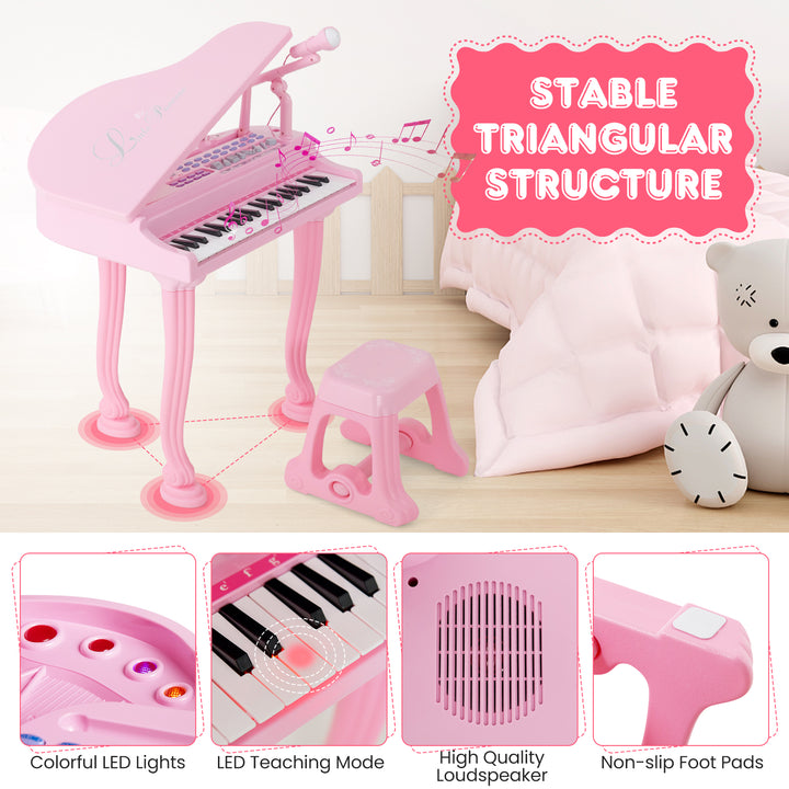 37 Keys Kids Piano Keyboard with Stool, Microphone and Piano Lid