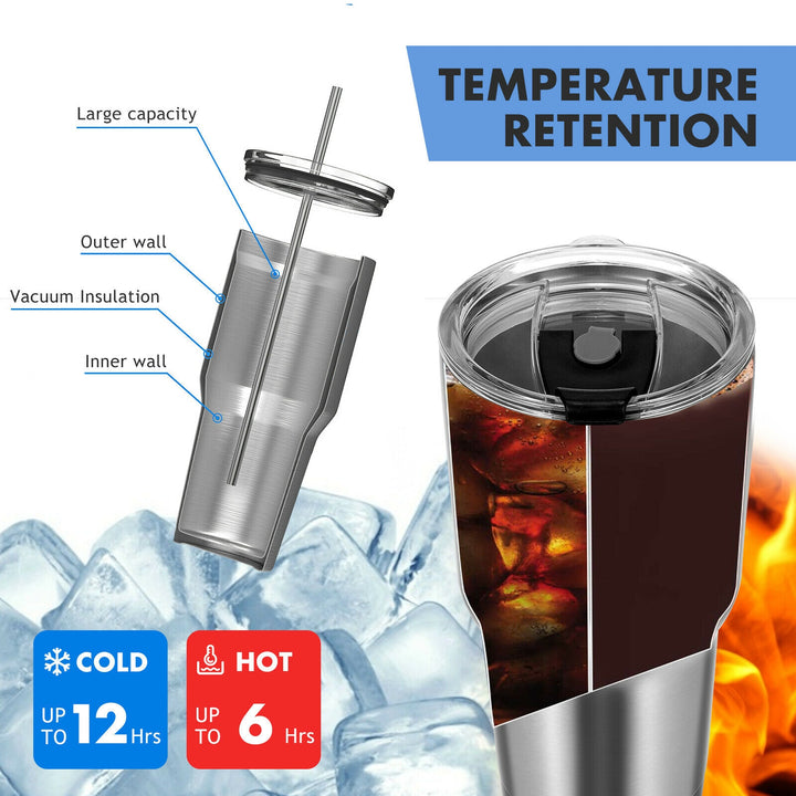 Superior Temperature Retention: Our tumbler is engineered with double-wall vacuum insulation, ensuring your coffee remains hot and your soft drinks stay chilled for hours, regardless of external temperatures.