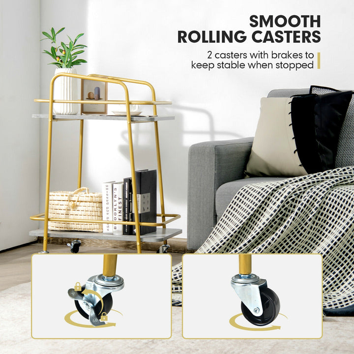 2-tier Kitchen Rolling Cart with Steel Frame and Lockable Casters