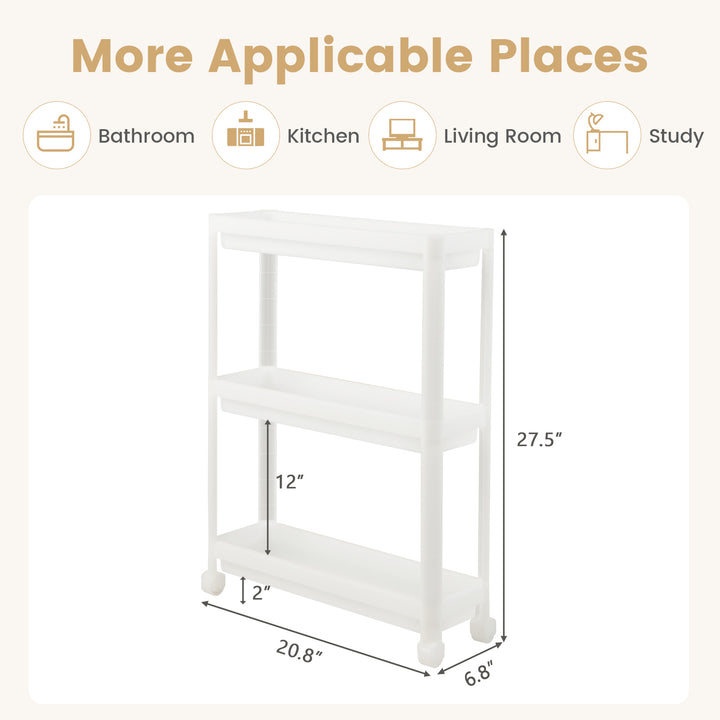 Slim and Adjustable Design: With a width of just 6.8 inches, this storage cart is specially designed to utilize narrow spaces effectively. Adjust it to 2 or 3 shelves based on your storage needs, providing a wide range of applications throughout your home.