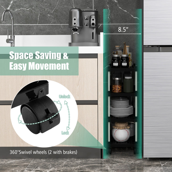 4-Tier Kitchen Slim Storage Cart with Lockable Wheels