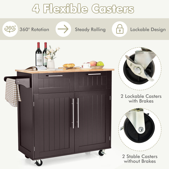 Kitchen Island Cart Rolling Storage Trolley with Towel Rack and Drawer