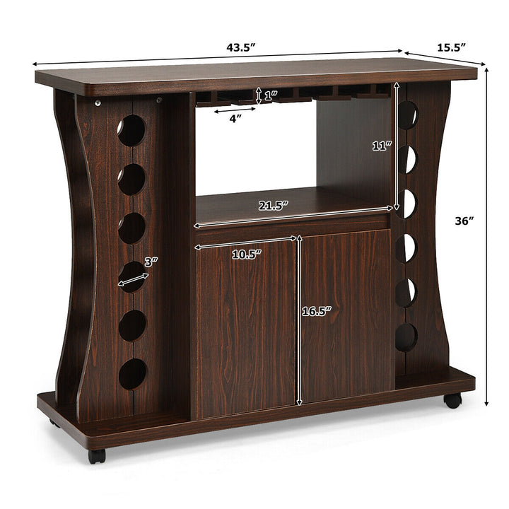 Rolling Buffet Sideboard Wooden Bar Storage Cabinet