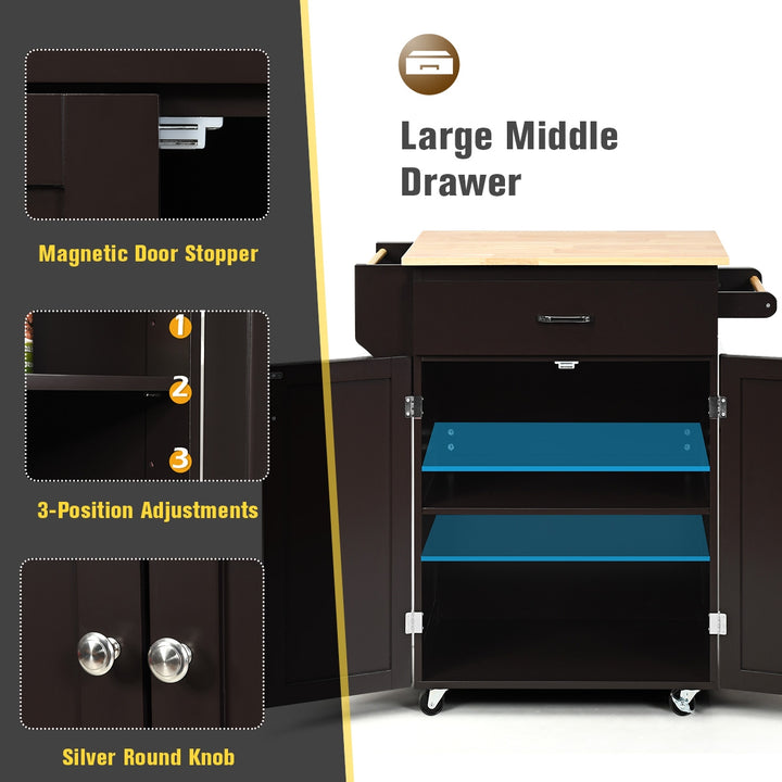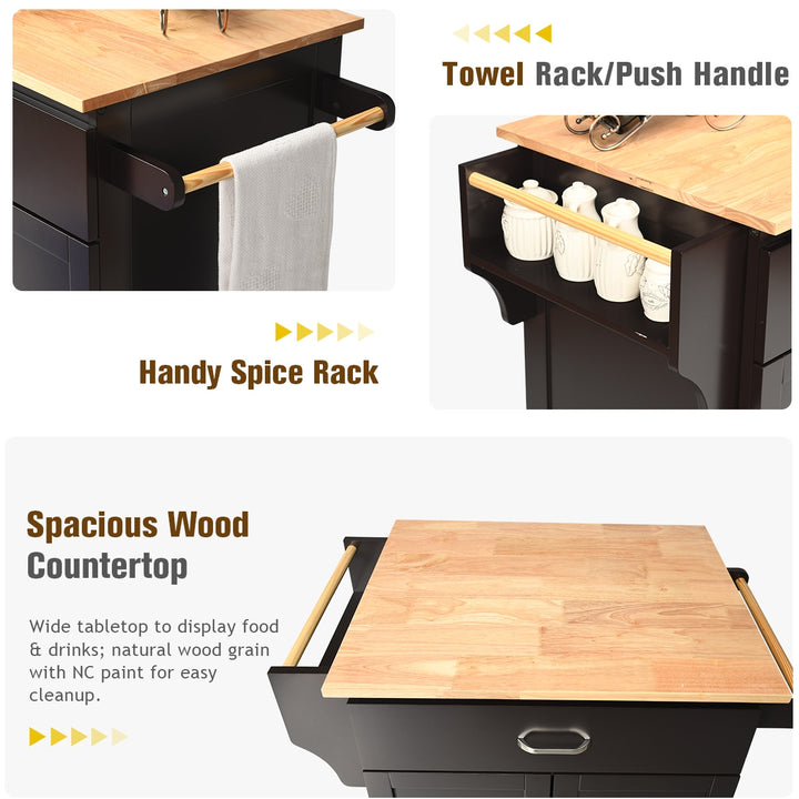 Rolling Kitchen Island with Spice Rack and Adjustable Shelf