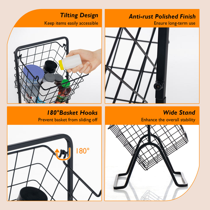 Three Hanging Baskets with Deep Volumes: Offers ample space for a variety of items, ensuring they are organized and easily accessible. The flexibility to convert the stand to one or two tiers caters to different storage needs and space constraints.