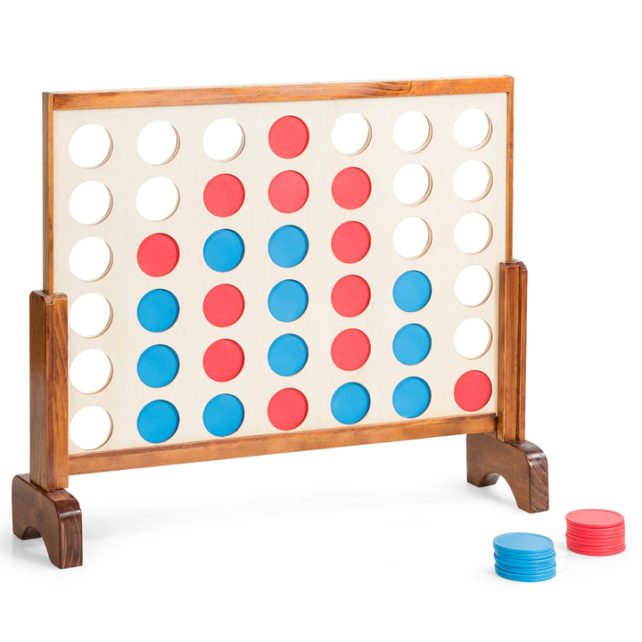 Crafted from Premium Wood: Unlike other plastic options that are prone to deformation, our 4 in a Row game is made from premium MDF material and pine wood, painted in a classic color scheme to appeal to both kids and adults. The solid game board is durable and designed for long-term use.