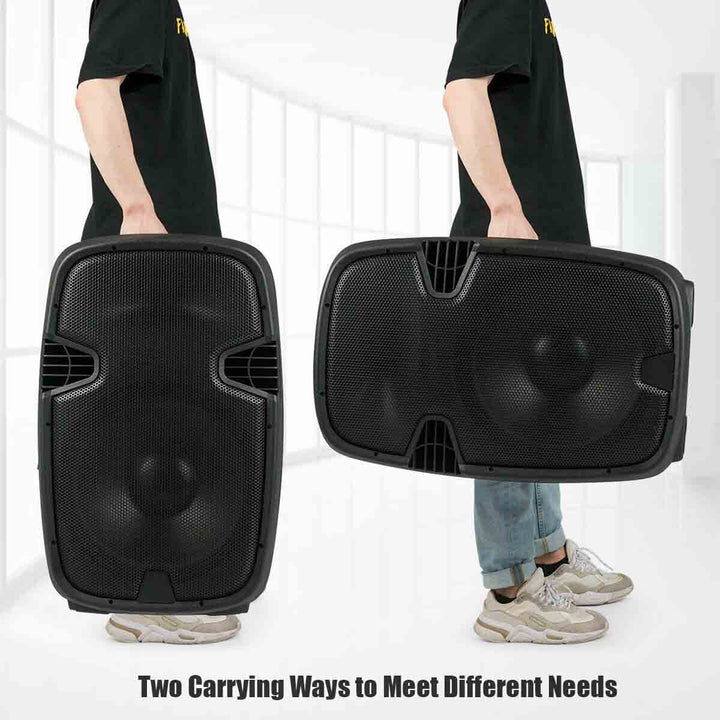 Portability Redefined: Designed with your lifestyle in mind, the speakers compact design and ergonomic handle offer unparalleled portability. Carry it vertically, horizontally, or roll it like a suitcase to bring your music wherever you go.