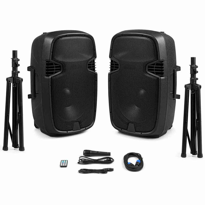 3000W Dual 15 Inch Powered Speakers with Adjustable Bracket