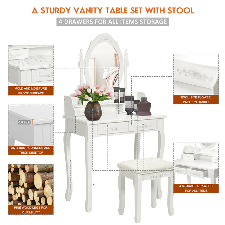 Wood Vanity Table Set with Oval Mirror and 4 Drawers for Kids Girls Women