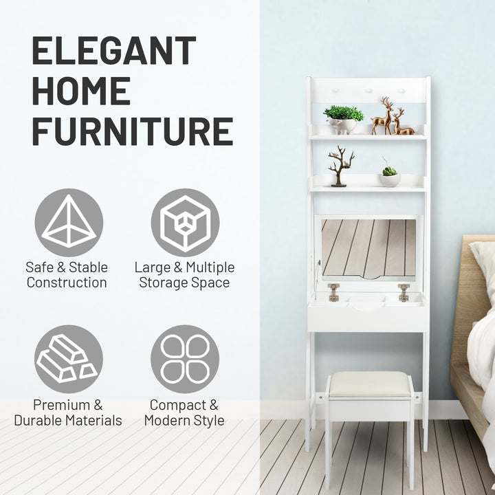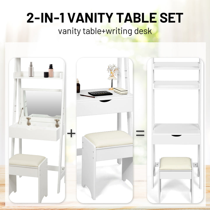 3-in-1 Modern Shelf Vanity Set with Flip Top Mirror and 6 Makeup Organizers