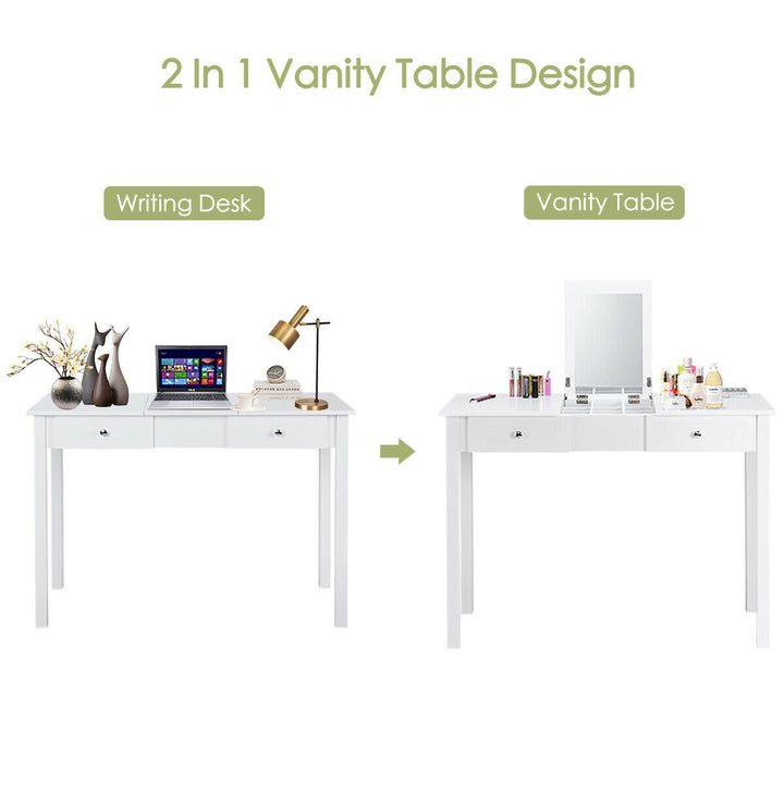 Introducing our innovative Flip Top Vanity Table, a versatile piece designed for those who value functionality, style, and organization. This 2-in-1 table serves as a makeup vanity and, with a simple adjustment, transforms into a desk for writing or housing your laptop. Its user-friendly design ensures that it seamlessly adapts to your daily needs, making it a perfect addition to any room.