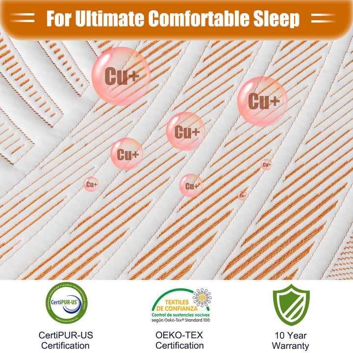 Enhanced with Copper Ion and Bamboo Charcoal: The innovative incorporation of copper ions in the cover and memory foam layers offers antibacterial and antiviral properties, promoting a healthier sleep environment. Bamboo charcoal fiber enhances breathability and maintains the freshness of the mattress over time.