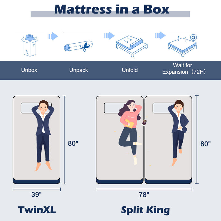 Convenient and Safe Packaging: Delivered in a compact and secure packaging, the mattress is compressed and rolled in a plastic bag within a cardboard box. It expands to its full size within 6 hours of unpacking, with any initial odor dissipating within 72 hours.