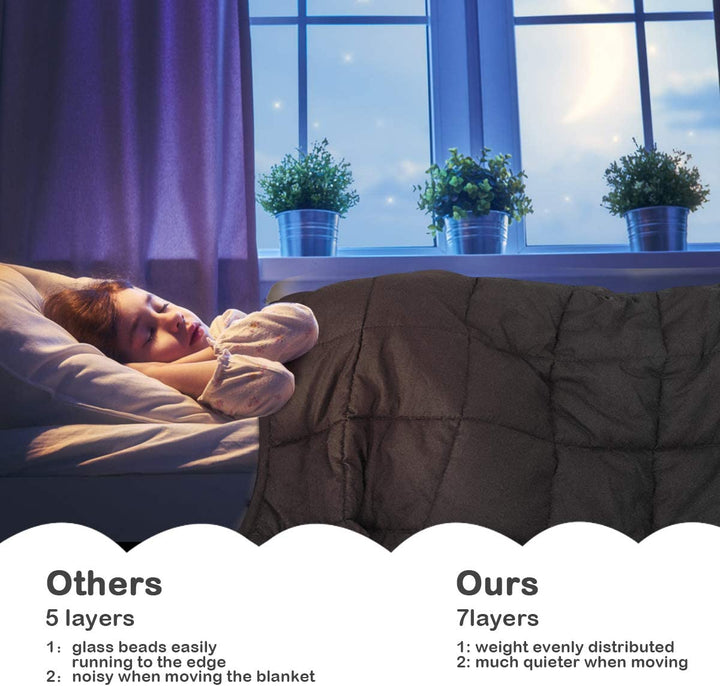 Our Luxurious Weighted Blanket transcends traditional bedding to provide therapeutic benefits, ensuring a serene and tranquil sleep experience night after night. Whether youre seeking to calm your mind before sleep, improve your sleep quality, or simply relax after a long day, this weighted blanket wraps you in comfort and tranquility. Choose the perfect weight and size for your needs, and transform your sleep into a nightly retreat of relaxation and rejuvenation.