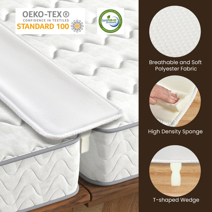 Superior Comfort and Safety: The bed bridge is crafted with a breathable and soft polyester fabric top surface, ensuring comfortable sleep throughout the night. The high-density sponge mattress extender is OEKO-TEX Standard 100 certified, providing peace of mind regarding the safety and quality of materials used.