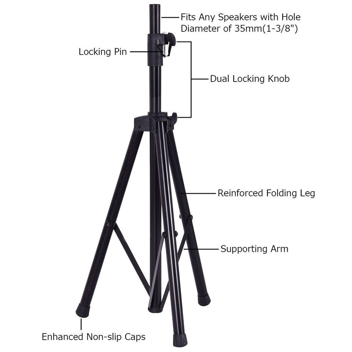 Robust Construction: Made from high-grade stainless steel and designed with tripod legs, this speaker stand is built to offer unparalleled solidity and stability. It confidently supports speakers weighing up to 110 lbs, providing a secure platform for your audio equipment.