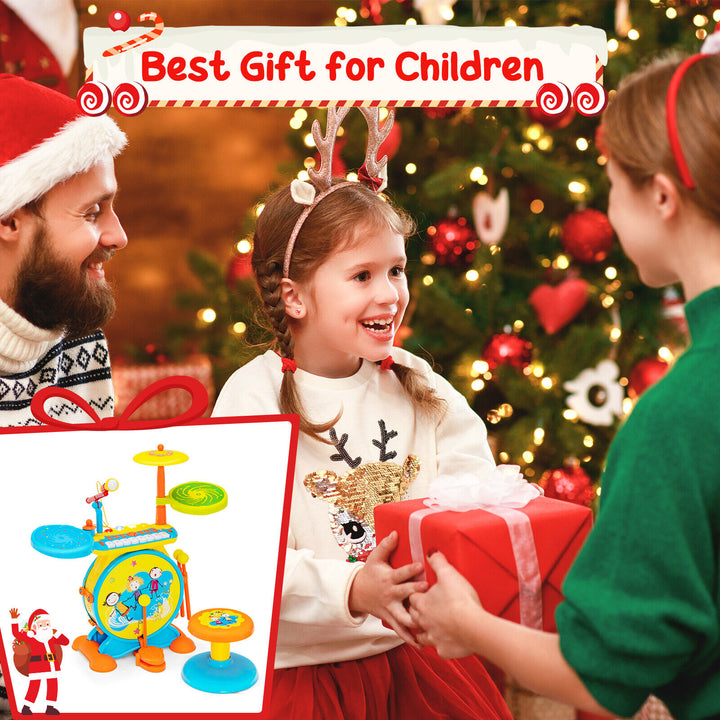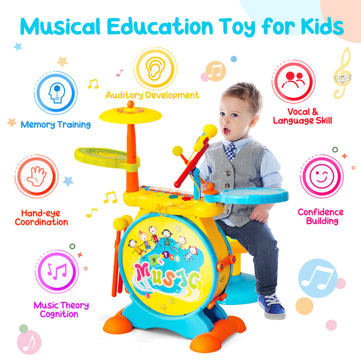 2-in-1 Kids Electronic Drum and Keyboard Set with Stool
