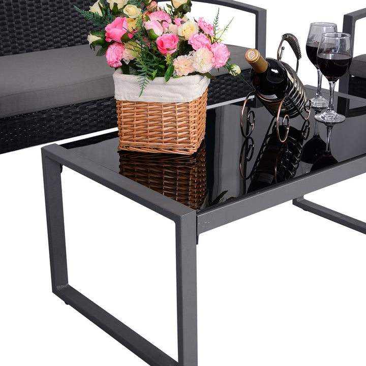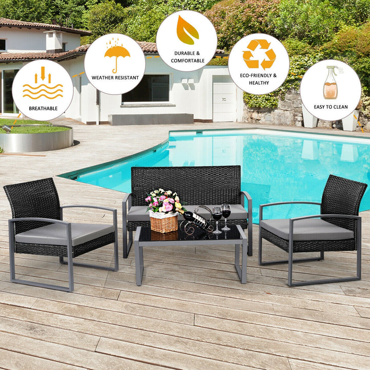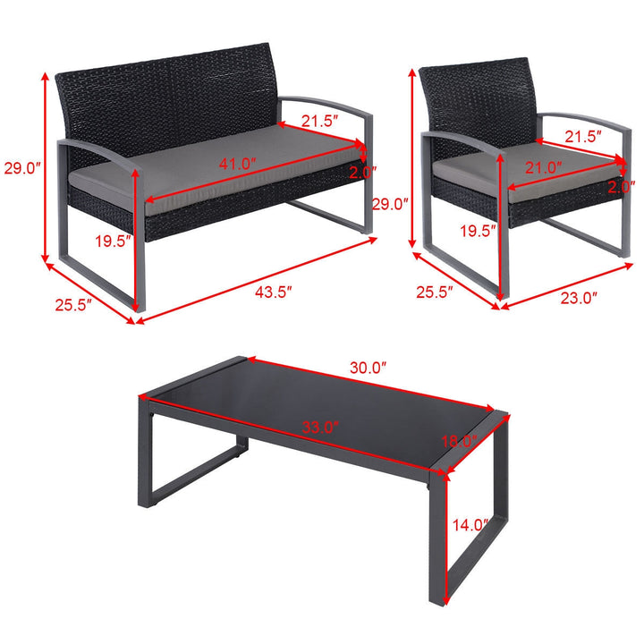4 PCS Modern Outdoo Patio Cushioned Rattan Seat