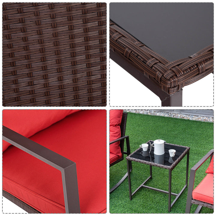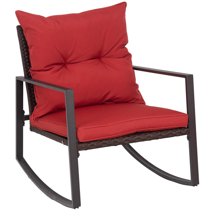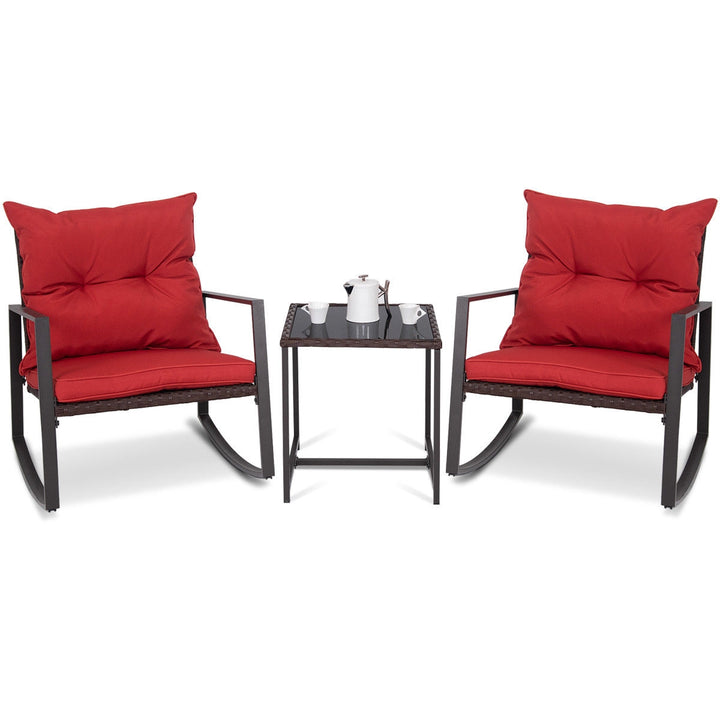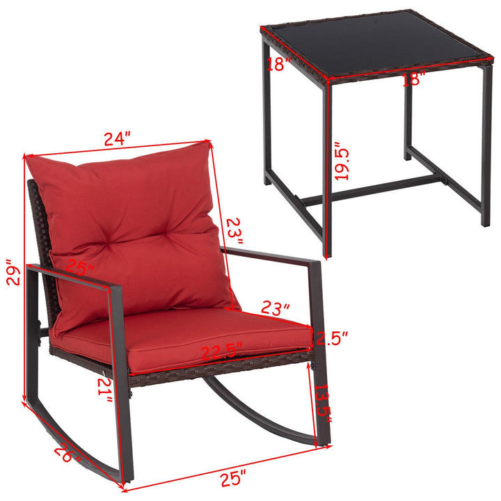 3 pcs Patio Rocking Outdoor Rattan Chair Set with Cushion