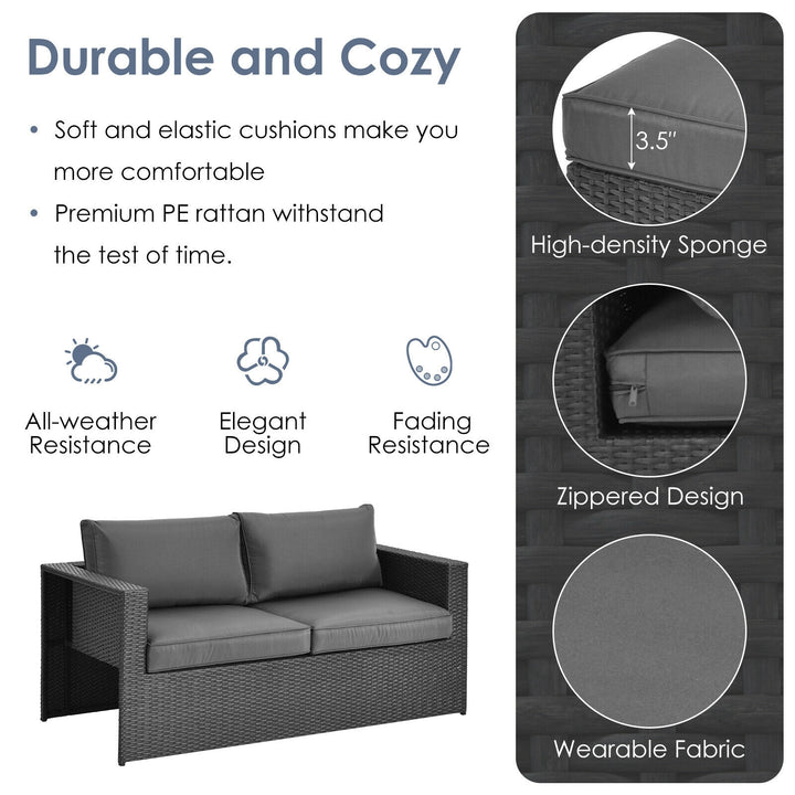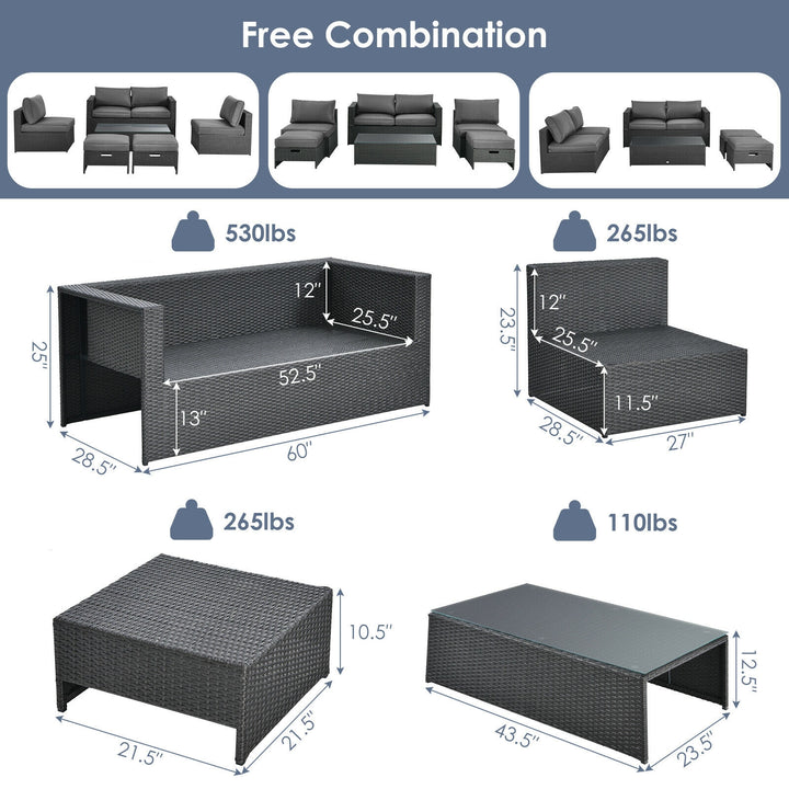 6 Pieces Patio Rattan Furniture Set Space Saving Cushioned No Assembly