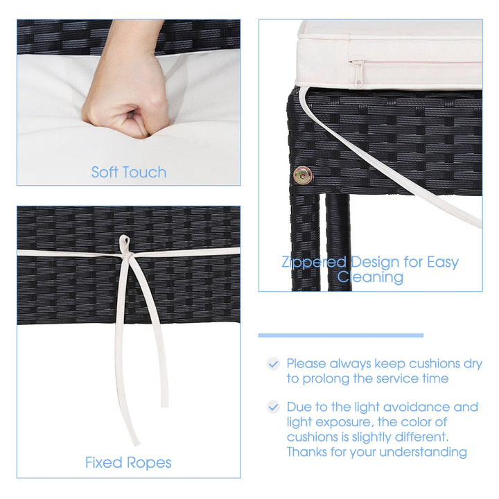Durability for Outdoor Enjoyment: Crafted with high-quality black PE rattan, this set is weather-resistant, fade-resistant, and sun-protective, ensuring long-lasting outdoor use. The powder-coated steel frame, reinforced with an X-shaped structure, provides robust stability and rust resistance.