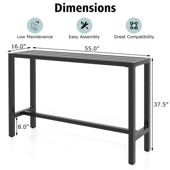 Versatile Use: Ideal for both indoor and outdoor settings, this high-top dining tables 48"/55" long tabletop accommodates various activities, from intimate coffee dates to extensive buffet setups. Its design also makes it an excellent companion beside your hot tub for holding drinks, snacks, or reading materials.
