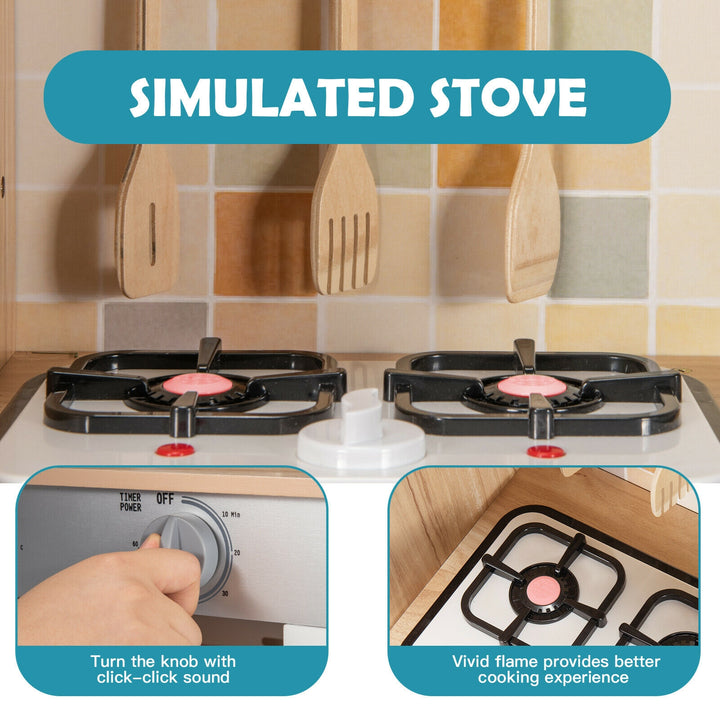 Wooden Kids Pretend Kitchen Playset Cooking Play Toy with Utensils and Sound