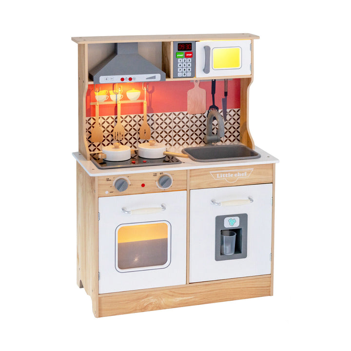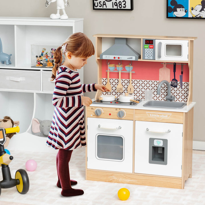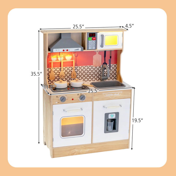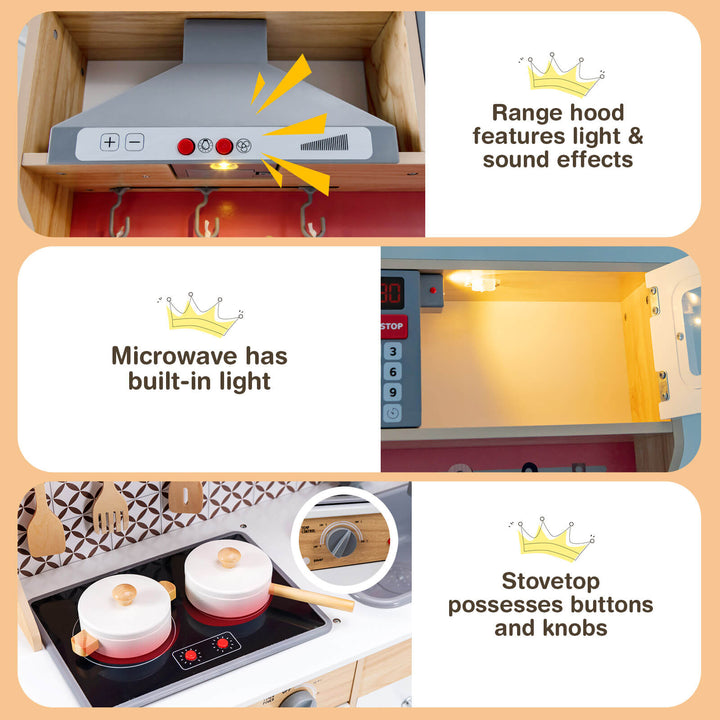 Multi-Functional Wooden Kids Kitchen Playset with Lights and Sounds