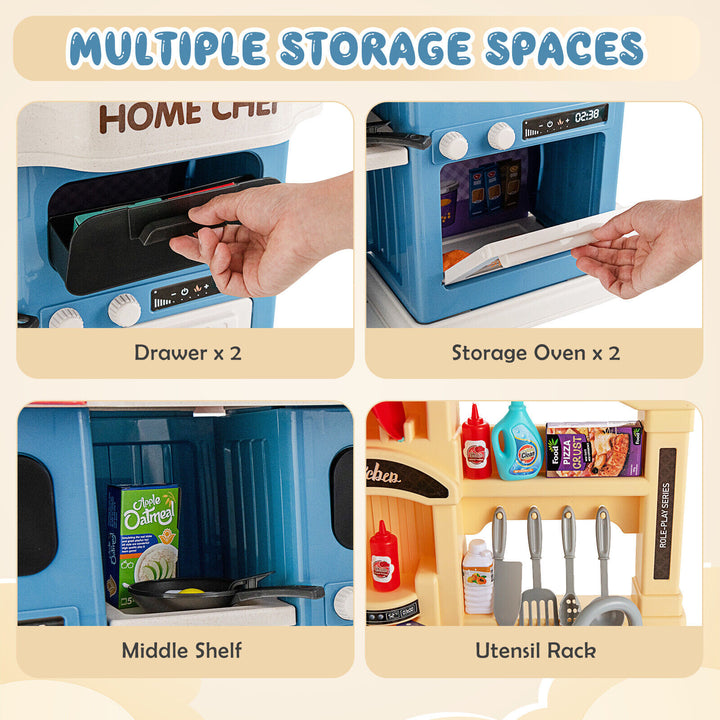 69 Pieces Kitchen Playset Toys with Realistic Lights and Sounds