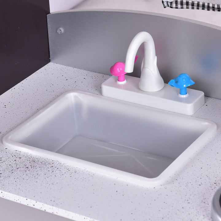 Lifelike Play Experience: Equipped with essential appliances such as a microwave, oven, and refrigerator, plus extra details like a faucet, removable sink, and turning oven switches, enhancing the realistic play.