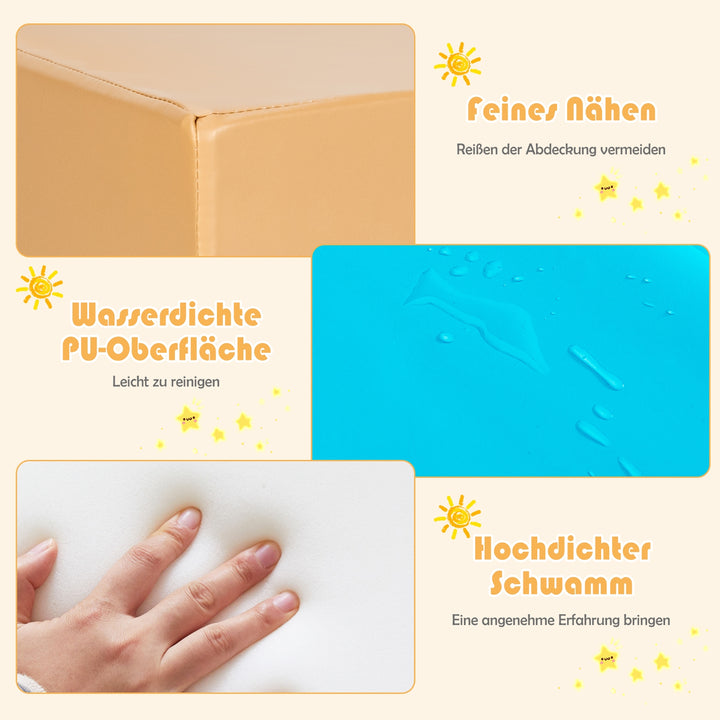 Simple Cleaning Process: Maintenance is a breeze thanks to the waterproof PU material covering the set, ensuring spills can be wiped away quickly. This feature is particularly beneficial in environments frequented by children, where messes are common.