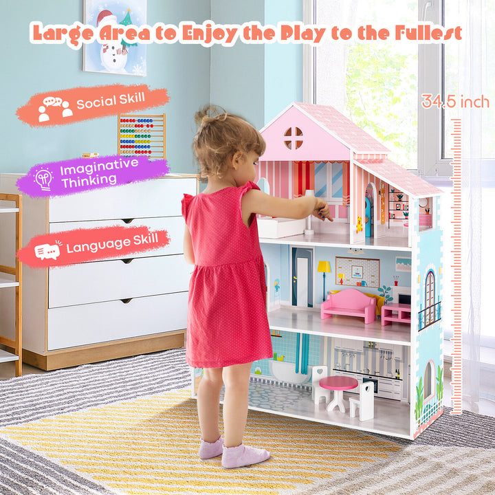 3-Tier Toddler Doll House with Furniture Gift for Age over 3