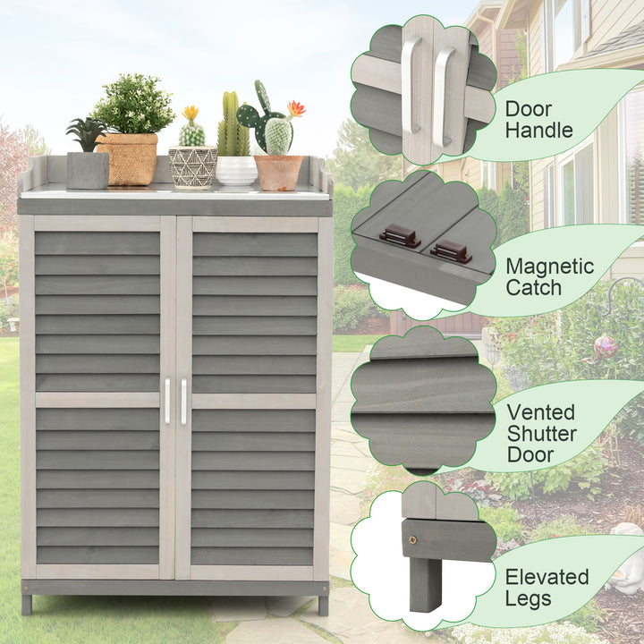 Garden Potting Bench Table with 2 Storage Shelves and Metal Plated Tabletop