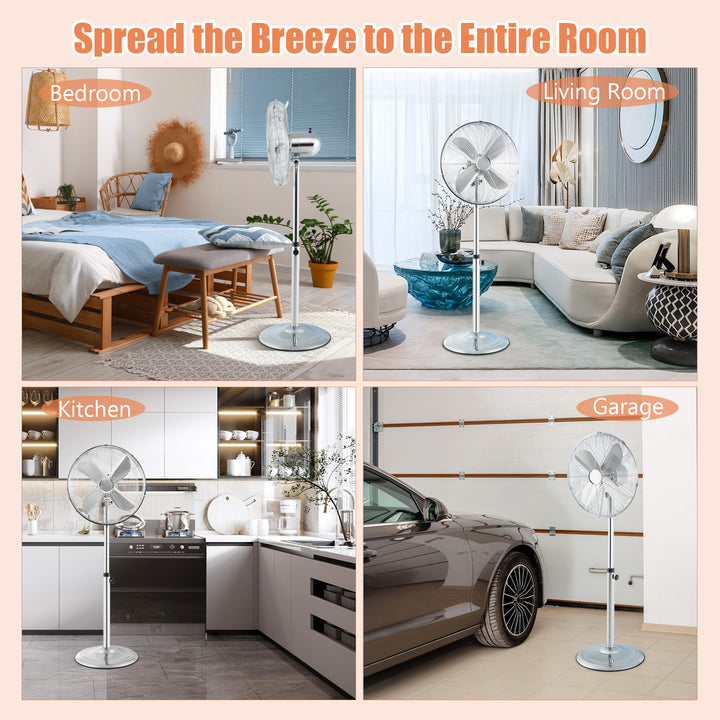 This adjustable pedestal fan offers 3 speed settings, wide oscillation, and 20¡ã tilt for optimal airflow in any room. With an adjustable height of 34.5" to 49.5", durable metal construction, and a stable weighted base, it ensures lasting performance. Its portable design with a built-in handle makes it versatile and perfect for multiple spaces.