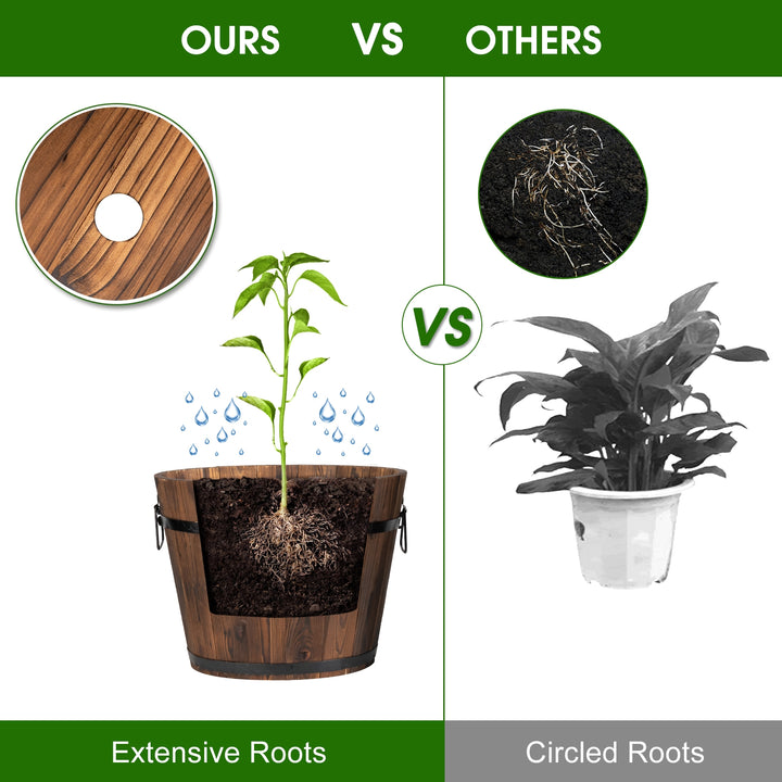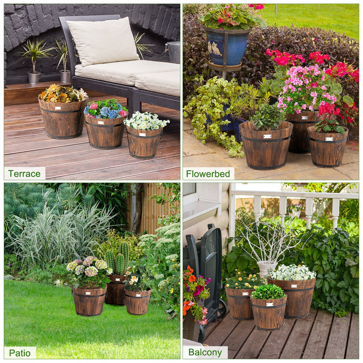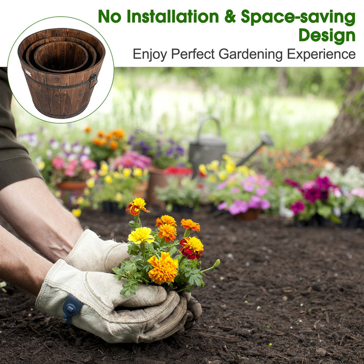 3 Pieces Wooden Planter Barrel Set with Multiple Size