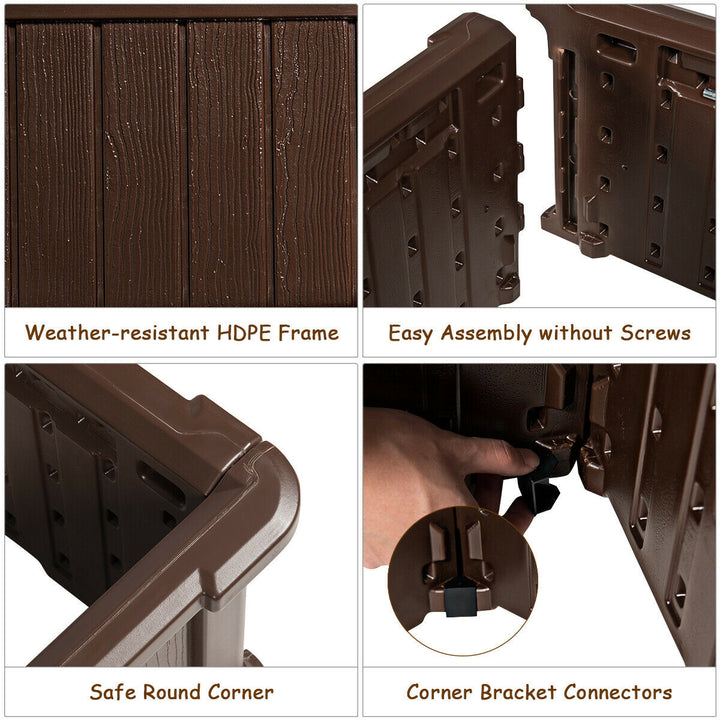 Durable, Weather-Resistant Construction: Crafted from high-density polyethylene (HDPE), this garden box is built to last, offering sturdy support for your plants while withstanding the elements. HDPEs resistance to weather conditions eliminates concerns about rust or deterioration, ensuring your garden bed remains in prime condition over time.