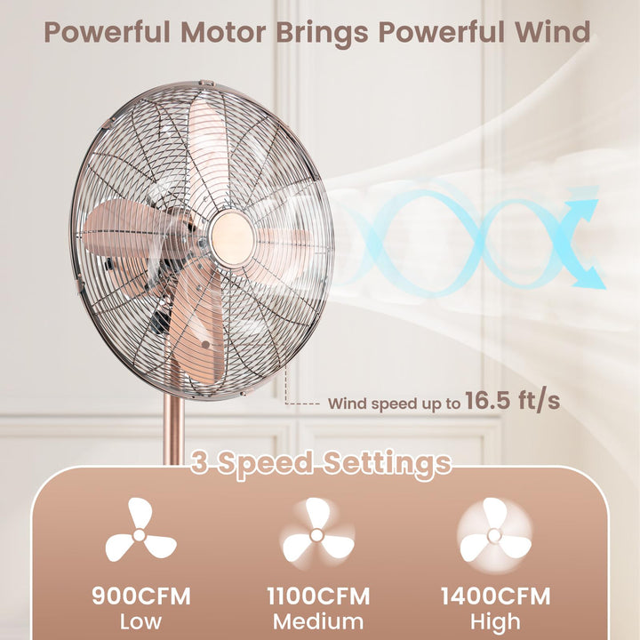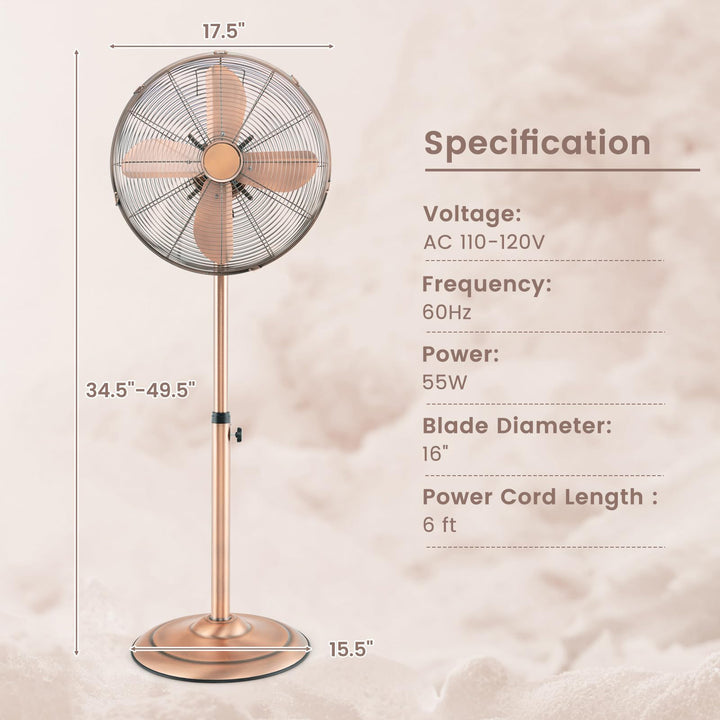 16 Inch Pedestal Standing Fan Oscillating Pedestal Fan with 3 Speeds and Adjustable Height