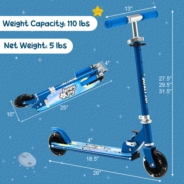 Folding Adjustable Height Kids Toy Kick Scooter with 2 Flashing Wheels