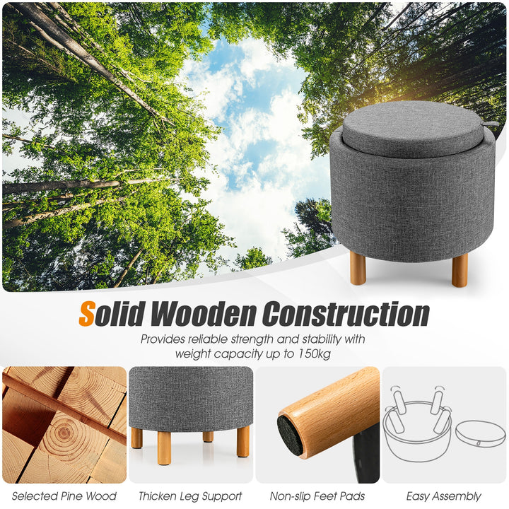 Round Fabric Storage Ottoman with Tray and Non-Slip Pads for Bedroom