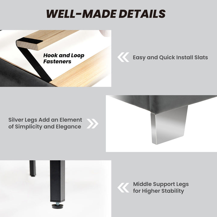 Full/Queen Size Upholstered Bed Frame with Velvet Headboard