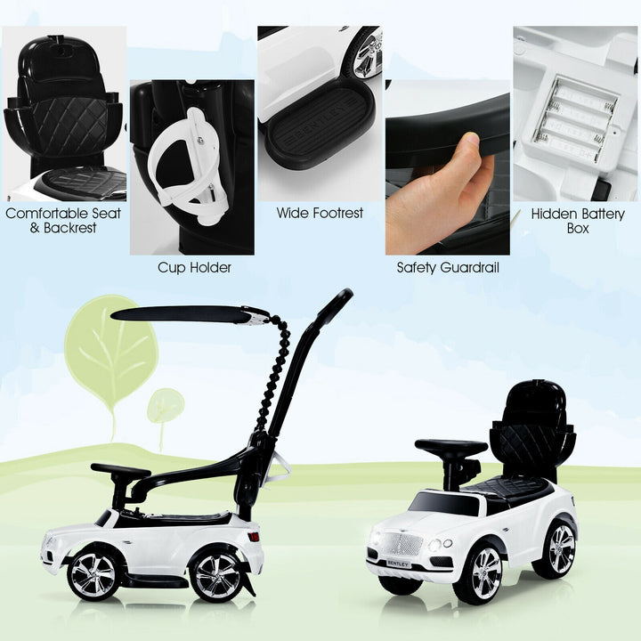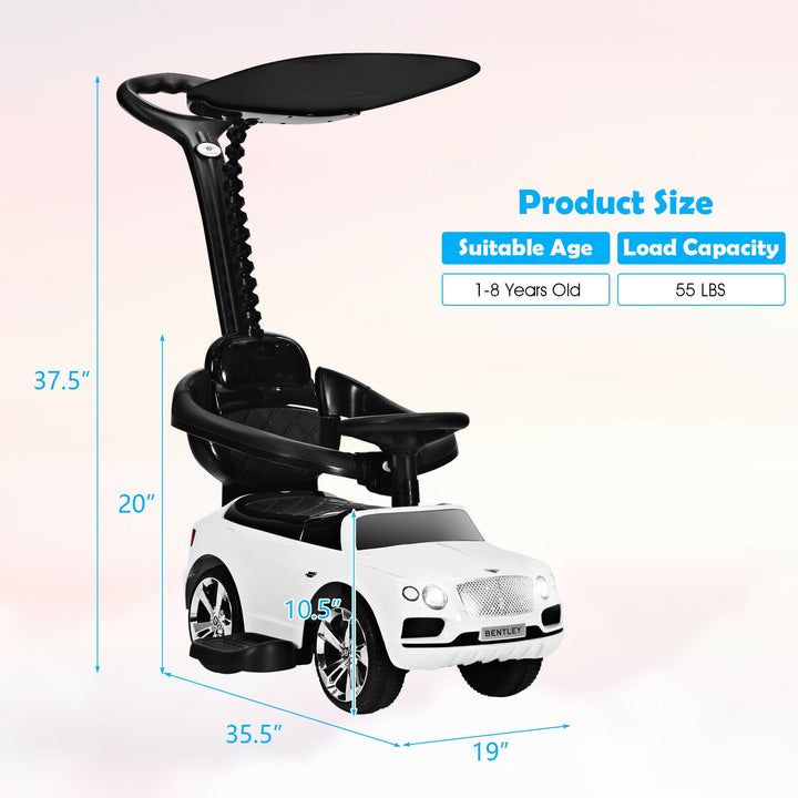 3-in-1 Licensed Bentley Kids Push and Sliding Car with Canopy