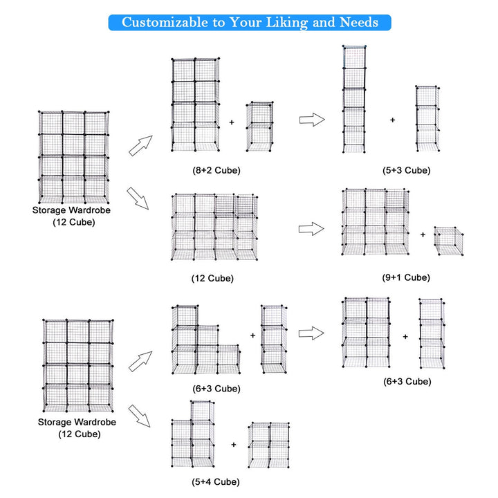 42-Inch x 14-Inch x 56-Inch DIY 12-Cube Metal Grid Wire Storage Cubes