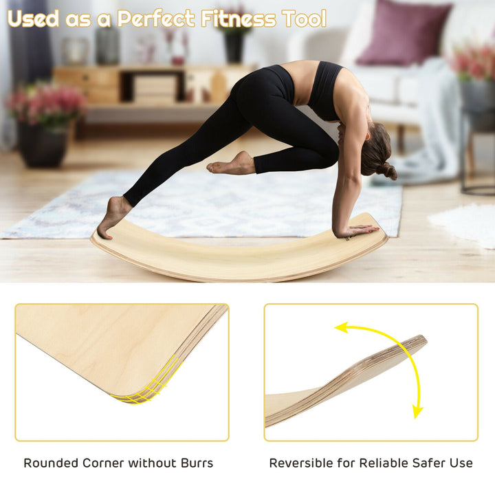Inclusive Design: Measuring 35 inches in length, 12 inches in width, and 7.5 inches in height, with a 1-inch thickness of wood, this balance board is crafted to accommodate both kids and adults comfortably. Capable of supporting up to 485 lbs, its the perfect size for a wide range of activities, from stretching to complex yoga poses.