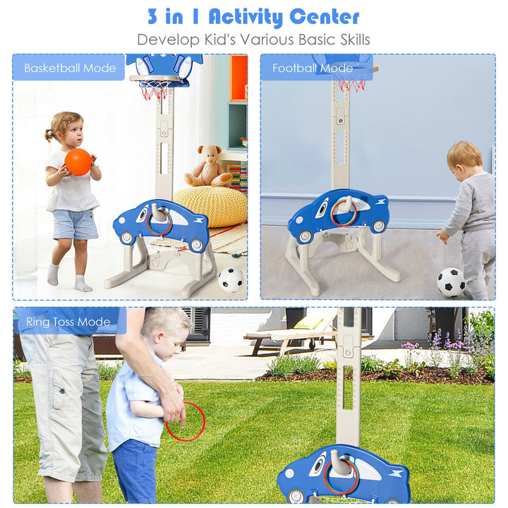 3-in-1 Basketball Hoop for Kids Adjustable Height Playset with Balls Blue