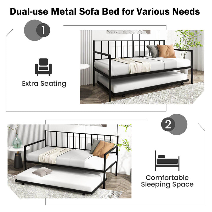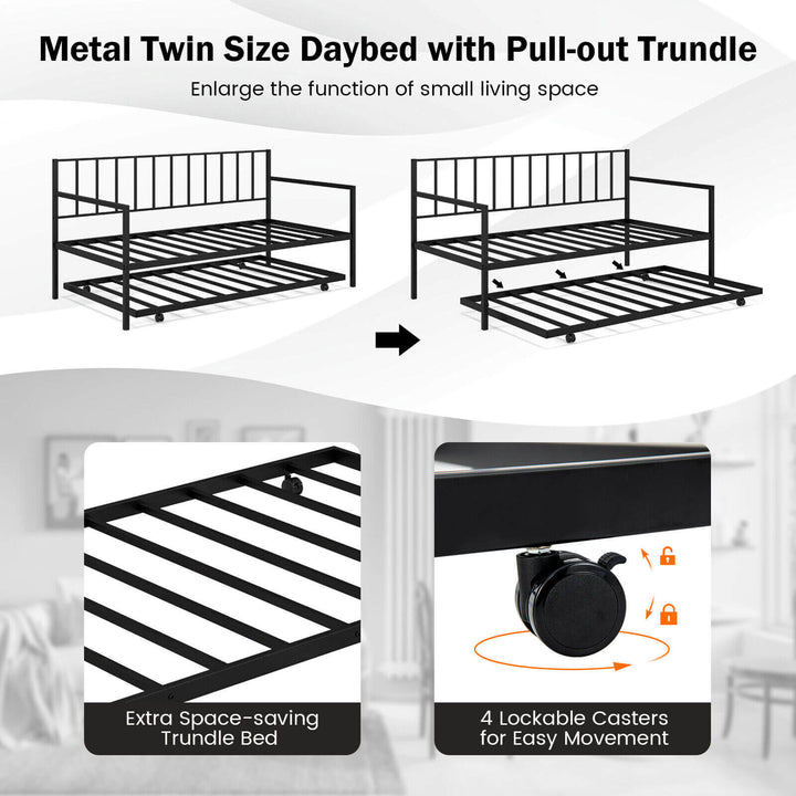 Twin Daybed Set with Metal Slat Support and Roll-Out Trundle
