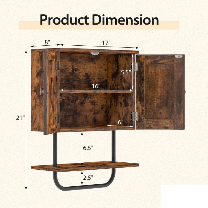 Multifunctional Storage: Equipped with a 2-tier closed cabinet, an open shelf, and a hanging rod, this wall cabinet provides ample space to store towels, toiletries, decorations, books, and more. Its versatile storage options cater to a variety of organizational needs.